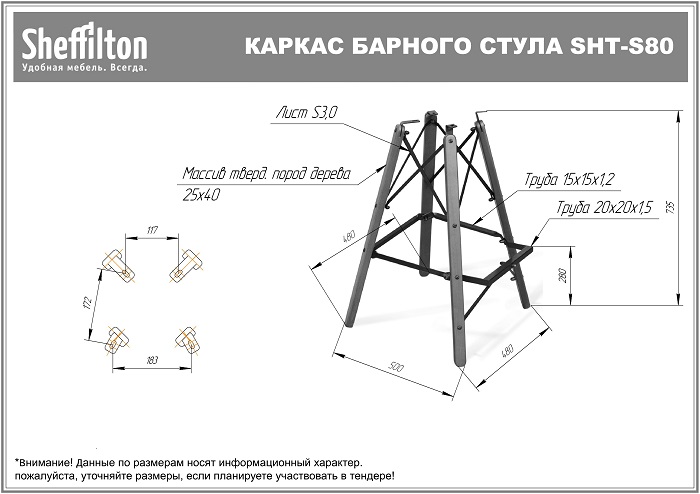 Каркас выполнен из массива древесины твердых пород с последующим тонированием и покрытием лаком.