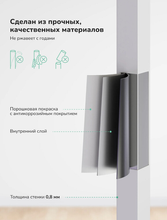 Металлический каркас с порошковой покраской и антикоррозийным покрытием, надежность и долговечность, устойчивость к коррозии.