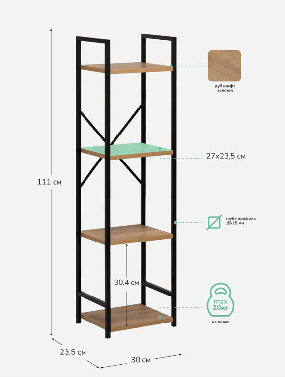 Максимальная нагрузка на полку 20 кг возможность размещать книги, бытовую технику и тяжёлые вещи.