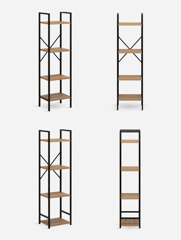 Стеллаж Leset Стилвуд 14 узкий 4 полки черный дуб крафт золотой