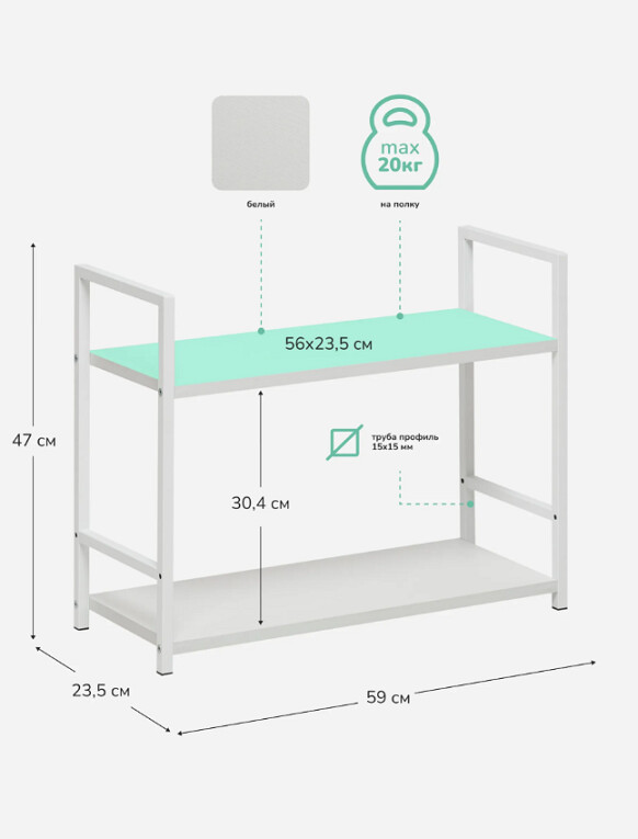 Максимальная нагрузка на полку 20 кг возможность размещать книги, бытовую технику и тяжёлые вещи.