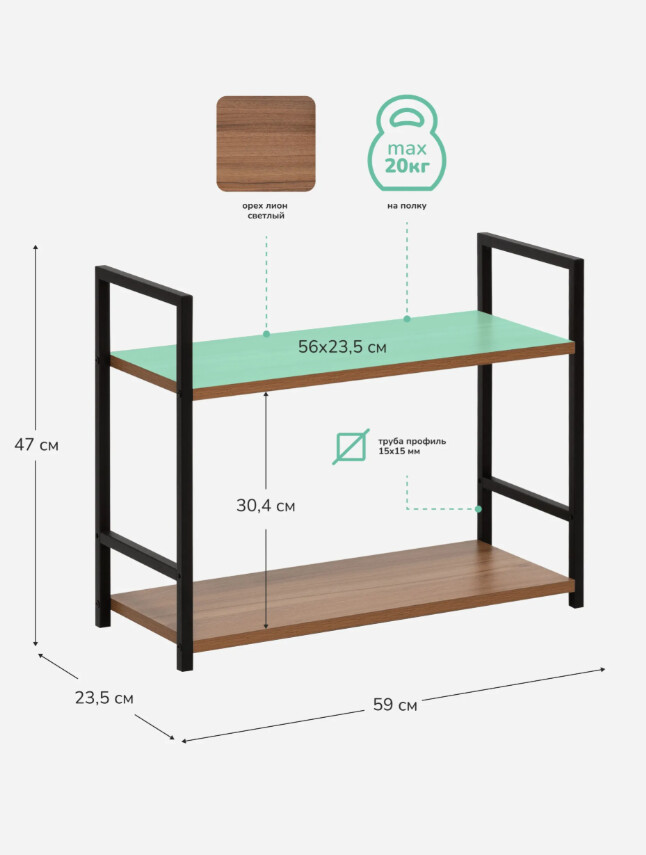 Максимальная нагрузка на полку 20 кг возможность размещать книги, бытовую технику и тяжёлые вещи.