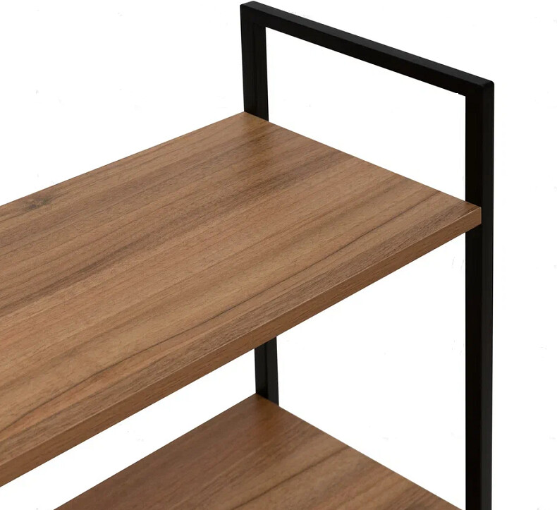 Напольный стеллаж Leset Стилвуд для хранения и организации вещей в прихожей, гостиной или на кухне, который помогает экономно использовать пространство и поддерживать порядок, а также выдерживать повседневные нагрузки.Каркас из металлического профиля 1.5 см, толщина 0.1 см с порошковым покрытием обеспечивает жёсткость и долговечность. Полки из ЛДСП толщиной 1.6 см легко чистятся, устойчивы к царапинам и выдерживают до 20 кг каждая.