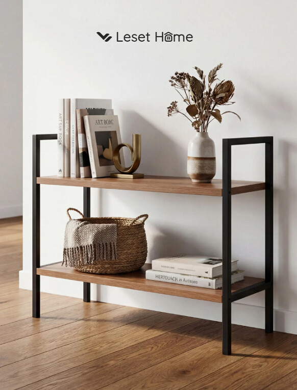 Стеллаж Leset Стилвуд 22 широкий 2 полки черный орех лион светлый