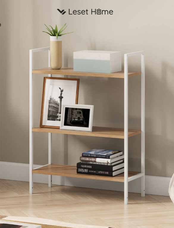 Стеллаж Leset Стилвуд 23 широкий 3 полки белый дуб крафт золотой