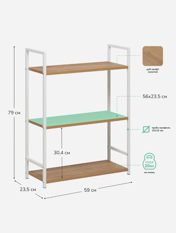 Максимальная нагрузка на полку 20 кг возможность размещать книги, бытовую технику и тяжёлые вещи.