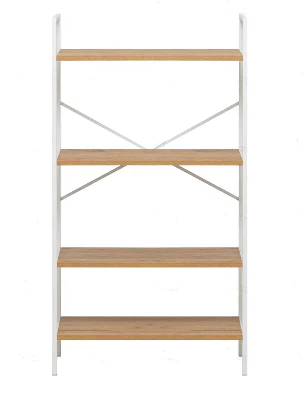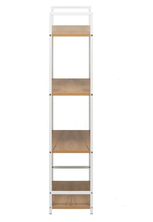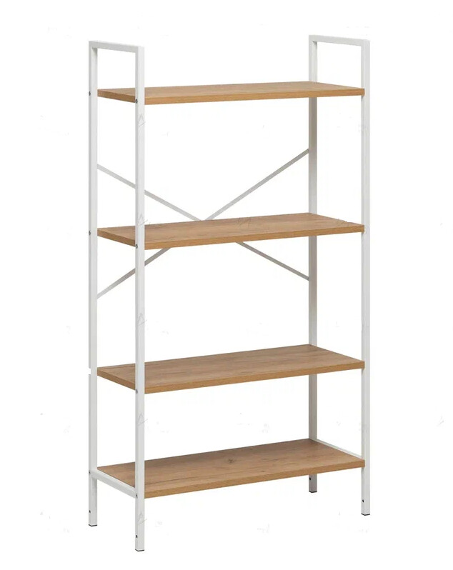 Напольный стеллаж Leset Стилвуд для хранения и организации вещей в прихожей, гостиной или на кухне, который помогает экономно использовать пространство и поддерживать порядок, а также выдерживать повседневные нагрузки.Каркас из металлического профиля 1.5 см, толщина 0.1 см с порошковым покрытием обеспечивает жёсткость и долговечность, крестовина жесткости и крепление к стене добавляют стабильности и безопасности. Полки из ЛДСП толщиной 1.6 см легко чистятся, устойчивы к царапинам и выдерживают до 20 кг каждая.
