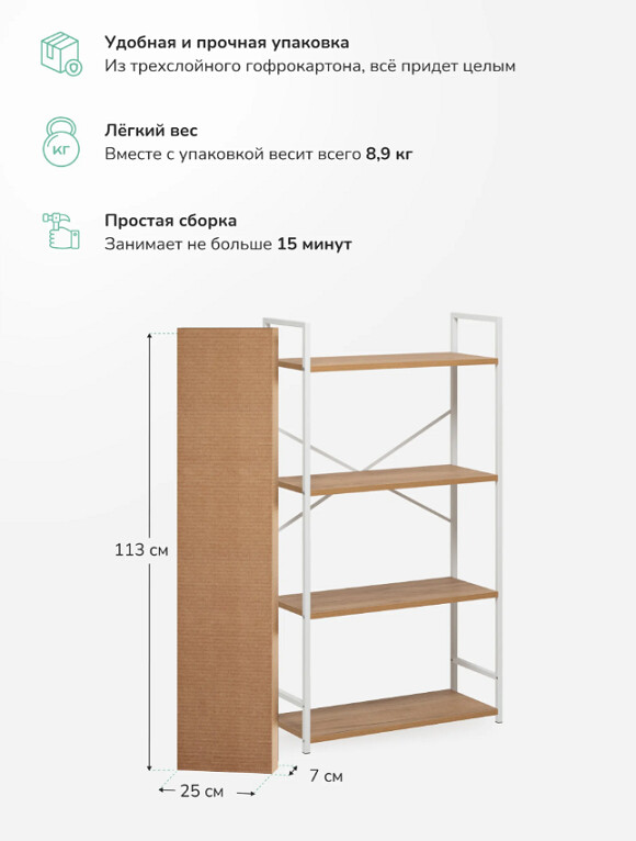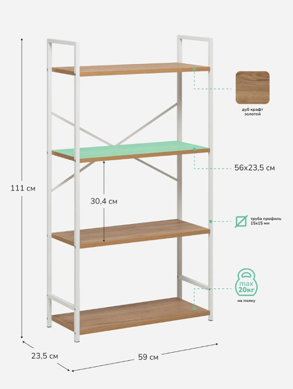 Максимальная нагрузка на полку 20 кг возможность размещать книги, бытовую технику и тяжёлые вещи.