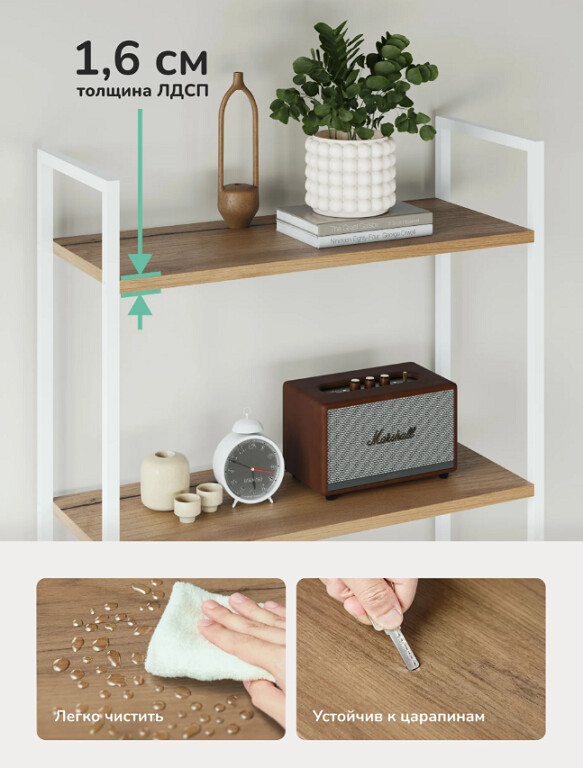 Полки ЛДСП 16 мм, прочные, устойчивы к царапинам и легко очищаются.