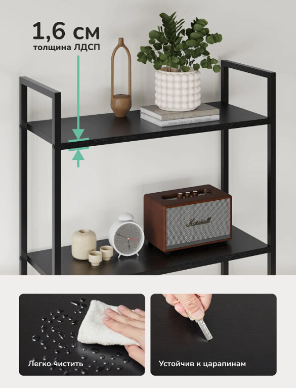 Полки ЛДСП 16 мм, прочные, устойчивы к царапинам и легко очищаются.