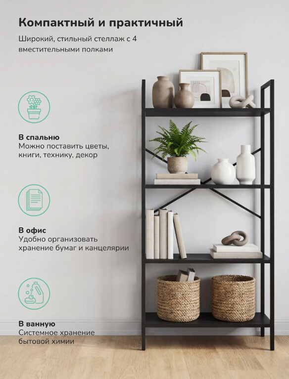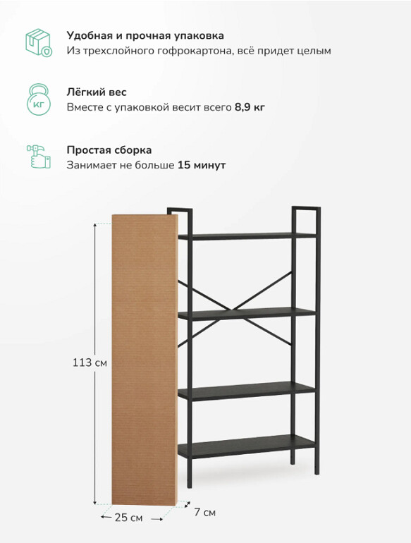Максимальная нагрузка на полку 20 кг возможность размещать книги, бытовую технику и тяжёлые вещи.