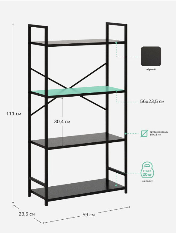 - Максимальная нагрузка на полку: 20 кг