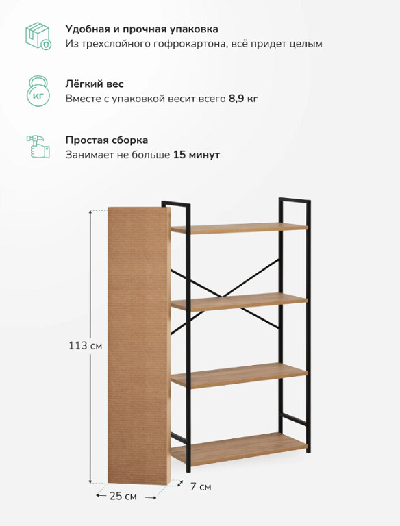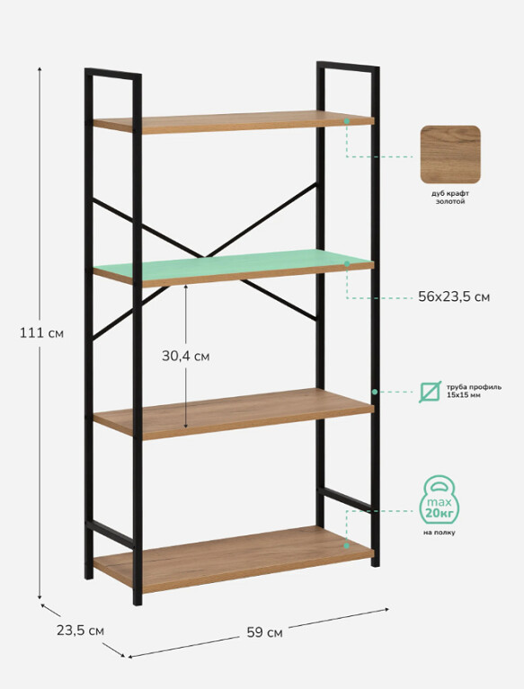 Максимальная нагрузка на полку 20 кг возможность размещать книги, бытовую технику и тяжёлые вещи.