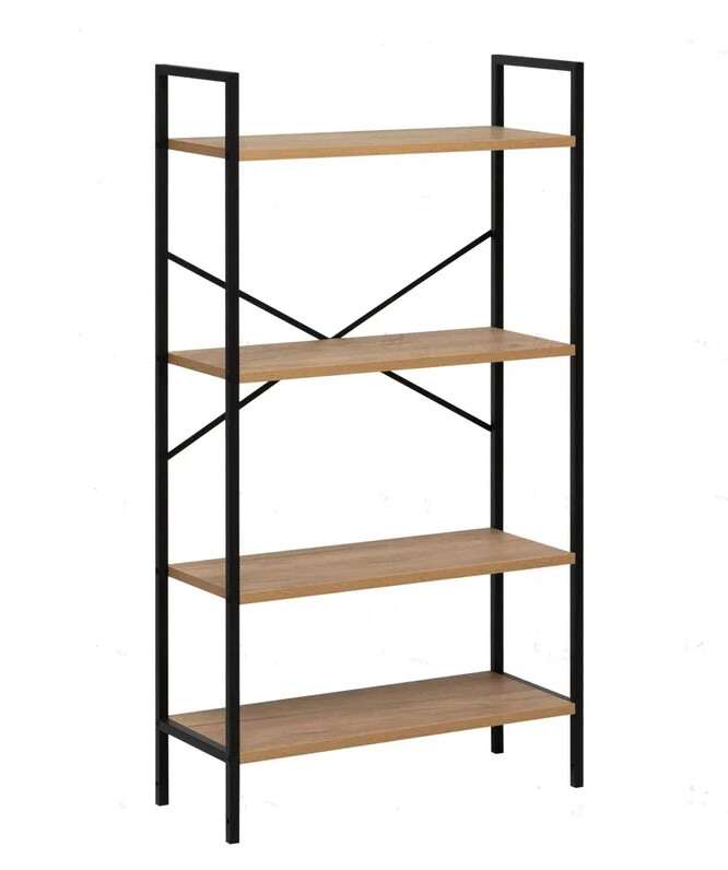 Стеллаж Leset Стилвуд 24 широкий 4 полки черный дуб крафт золотой