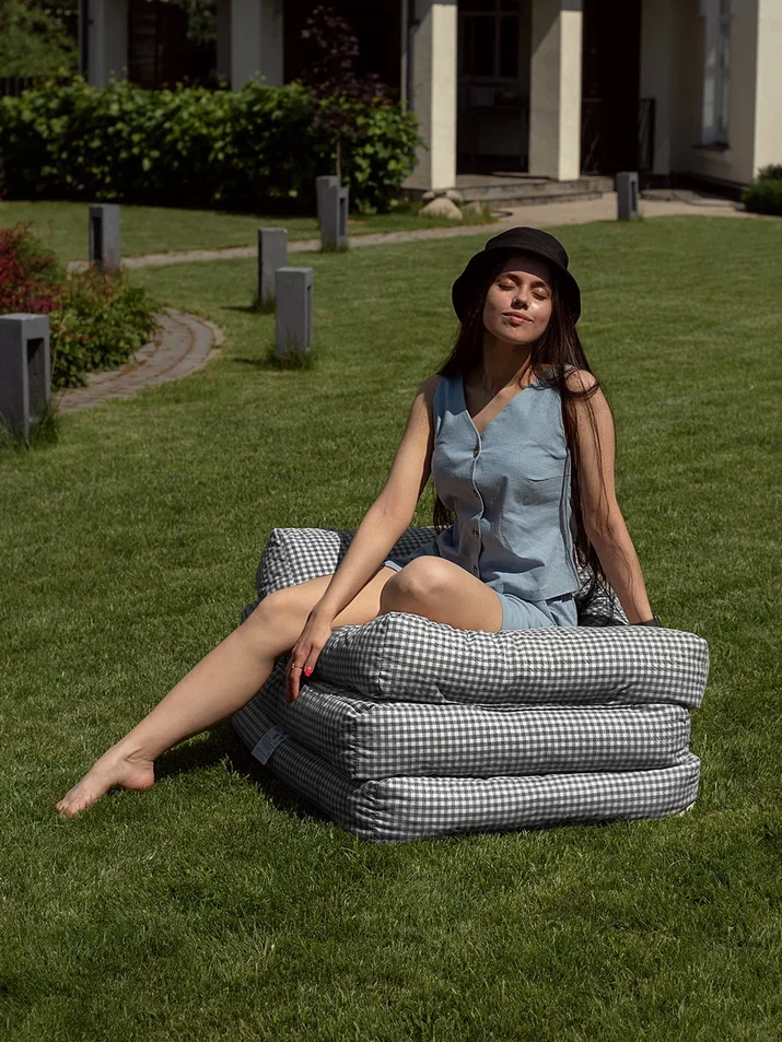 Лёгкий, мобильный футон Chisai – это оригинальное сочетание мягкого наполнителя и практичной ткани.В собранном виде футон выглядит, как пуф.