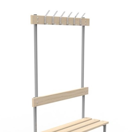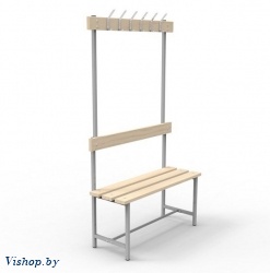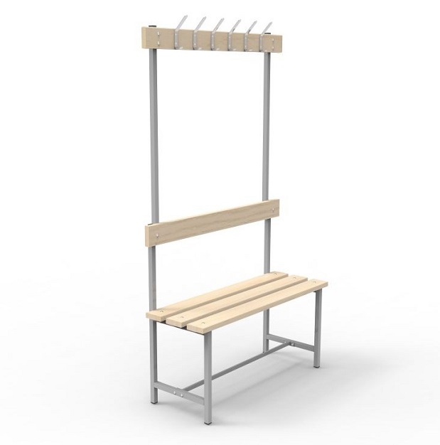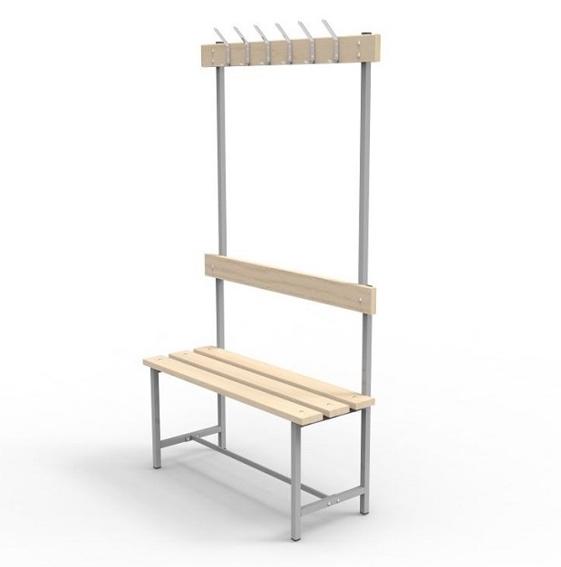 Скамья СВТ-4 с крючками предназначена для раздевалок в спортивных учреждениях, предприятий, офисов и т. д. Металлический каркас и доски из натуральной древесины обеспечивают надежность и долговечность эксплуатации. Каркас — стальная квадратная труба размером 25×25×1,2 мм. Материал сиденья — шлифованная деревянная доска толщиной 20 мм, покрытая специальным защитным маслом для дерева. Спинка на скамье обеспечит комфортное сиденье, а крючки удобное размещение вещей.Поставляется в разобранном виде, в компактной картонной таре. Простая сборка. Крепеж для монтажа к полу в комплекте не идёт.