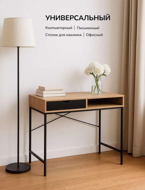Современный консольный столик Вудми с ящиками в стиле лофт — это универсальный элемент интерьера, который легко впишется в любую квартиру или дом.Тумба выполнена из высококачественного ЛДСП с металлическим каркасом, что гарантирует долговечность и стильный внешний вид.
