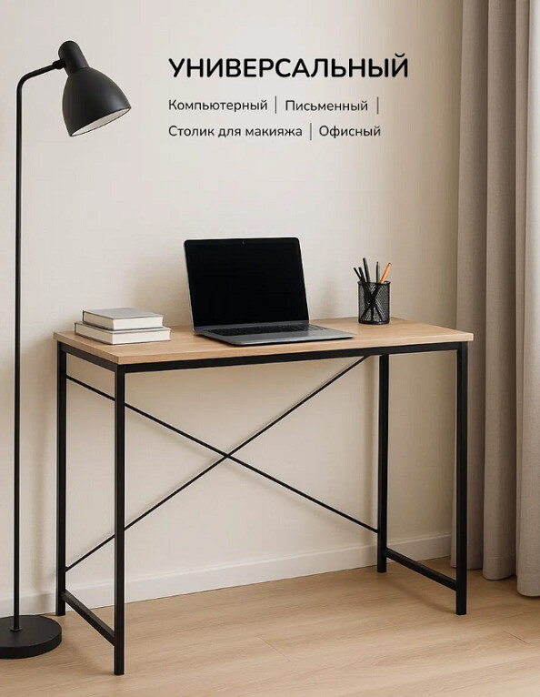 Компьютерный стол Вудми 100 в стиле лофт — универсальное решение для просторных помещений, так и для небольших комнат. Удобная конструкция стола сочетает прочность и надежность, позволяя использовать его с любой стороны.Стол выполнен на прочном металлическом каркасе (20x20 мм), что обеспечивает долговечность и устойчивость. Столешница и изготовлена из высококачественного ЛДСП 15 мм, что гарантирует легкость в уходе и стойкость к повреждениям. Вы можете быть уверены, что этот стол прослужит вам долго.