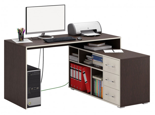 Письменный стол Краст-2 — эргономичный, минималистичный по исполнению стол, обладающий отличным функционалом, поможет грамотно организовать рабочее место, сэкономив пространство в помещении.Конструкцией предусмотрена удобная тумба с ящиками, а также вместительные открытые ниши для бумаг, папок и прочих предметов.