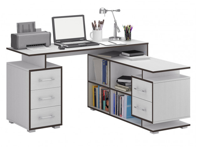 Невероятно функциональный письменный стол Краст-3 поможет грамотно организовать рабочее место, сэкономив пространство в помещении. Конструкцией предусмотрены две удобные тумбы с выдвижными ящиками, а также вместительные открытые ниши для бумаг.Варианты цвета: Белый, венге/дуб молочный, дуб сонома/белый.