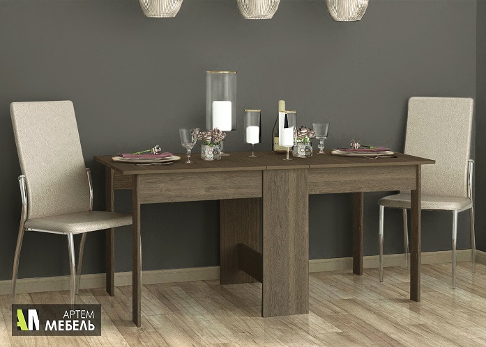 При необходимости можно разложить только одну сторону. Вы можете рассадить как не большую компанию из 2-3 человек, так и с комфортом разместить 7-8 родственников. В разложенном состоянии длина столешницы 160 см. В сложенном виде – это компактный стол тумба.
