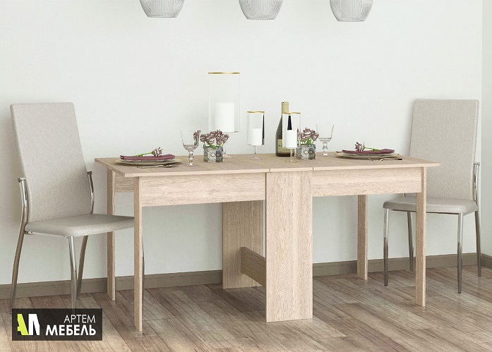 В собранном виде не занимает много место. В разложенном позволит собрать за столом большую семью.