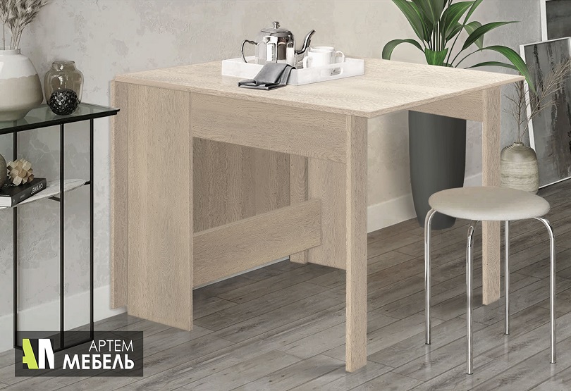 При необходимости можно разложить только одну сторону. Вы можете рассадить как не большую компанию из 2-3 человек, так и с комфортом разместить 7-8 родственников. В разложенном состоянии длина столешницы 160 см. В сложенном виде – это компактный стол тумба.