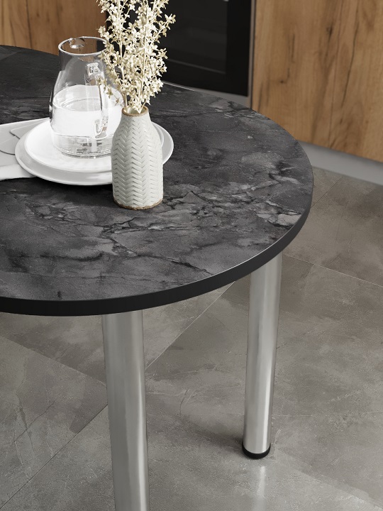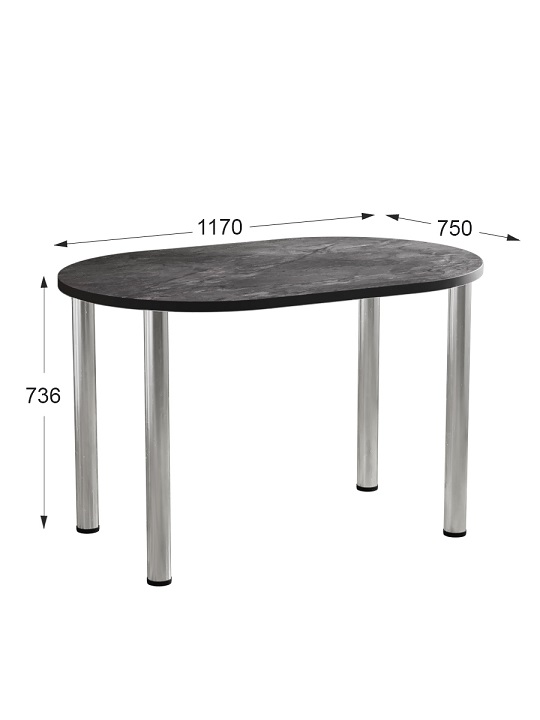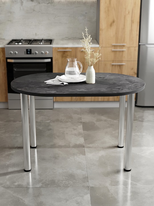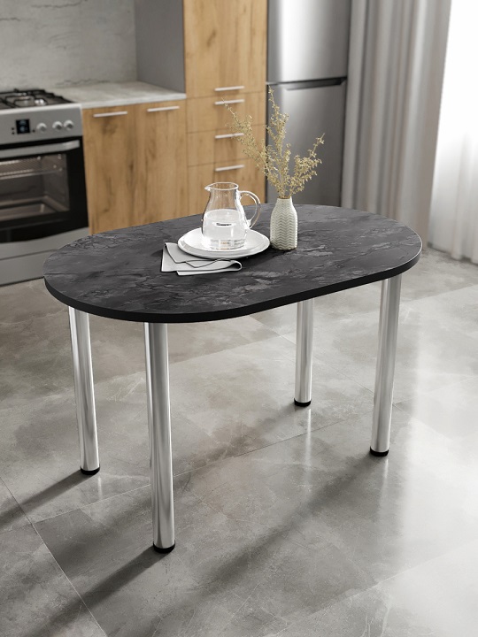 Стол кухонный СН-105.02 с двухсторонним закруглением — небольшой и комфортный обеденный стол, позволяет свободно расположить за собой до четырех персон.Хромированные ноги-трубы с блеском гармонично сочетаются с цветом столешницы. Кромки стола закрыты лентой ПВХ толщиной 2 мм.