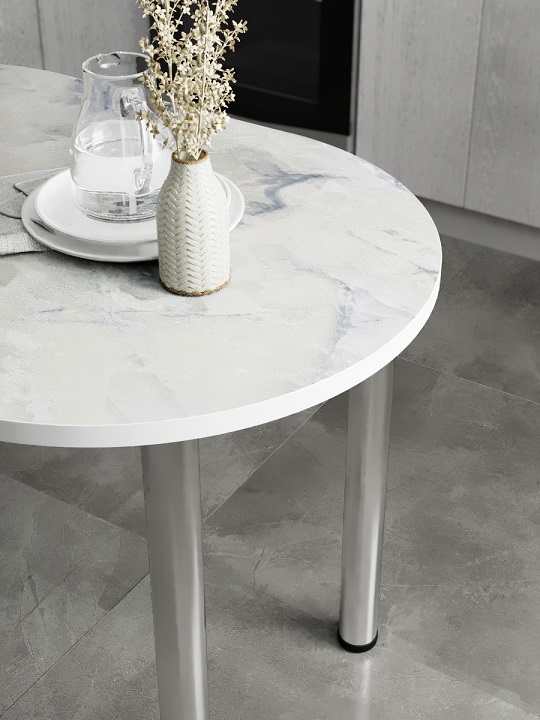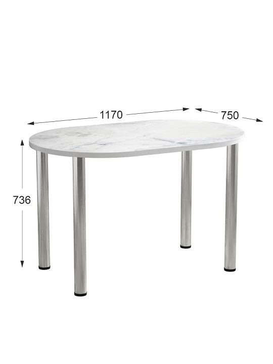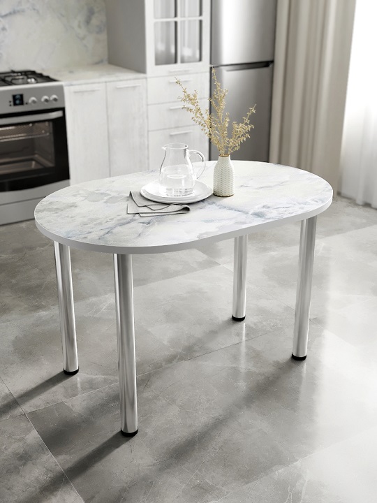 Стол кухонный СН-105.02 с двухсторонним закруглением — небольшой и комфортный обеденный стол, позволяет свободно расположить за собой до четырех персон.Хромированные ноги-трубы с блеском гармонично сочетаются с цветом столешницы. Кромки стола закрыты лентой ПВХ толщиной 2 мм.