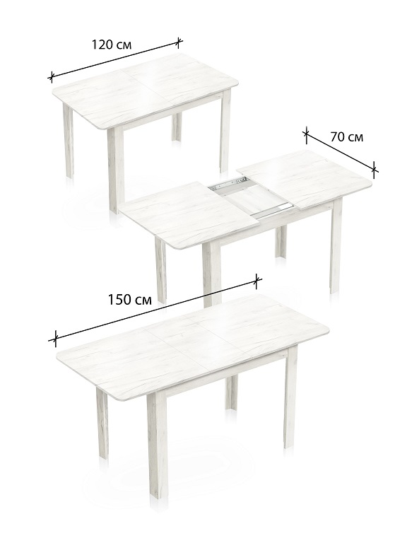 Стол обеденный раздвижной может быть идеальным выбором как для вашей кухни, так и для гостиной. Его компактные размеры гарантируют, что он легко встроится даже на небольшой кухне. Надежный каркас, выполненный из качественного материала ЛДСП толщиной 16мм, вместе с прочной столешницей обеспечивают долговечность.Данный обеденный стол трансформер имеет размеры 1200х700х750 мм в сложенном виде и 1500х700х750 мм в разложенном виде. Вкладная столешница размером 300х700 мм легко помещается в подстолье. В разложенном виде стол раздвижной может вместить до 8 человек, и его дизайн прекрасно дополнит классический или современный интерьер.