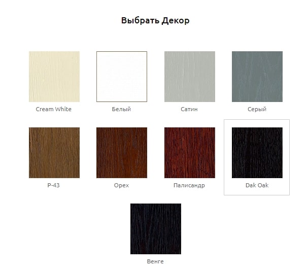 Варианты цветового решения: Cream White, белый, сатин, серый, Р-43, орех, Dak Oak, венге, Black.