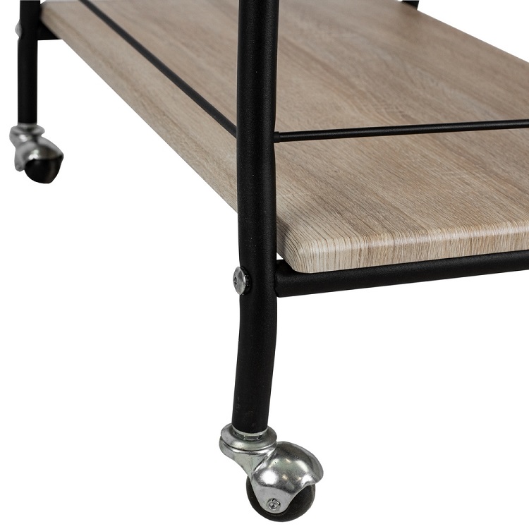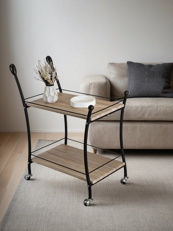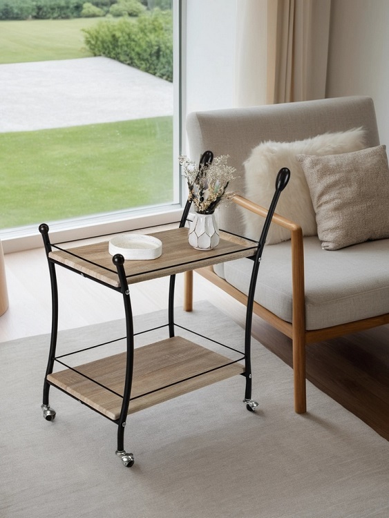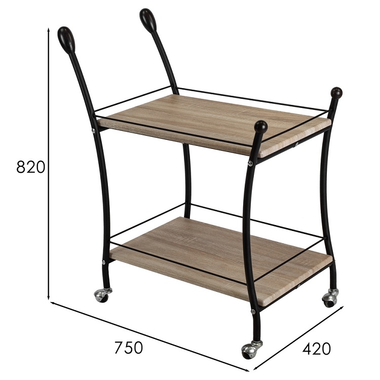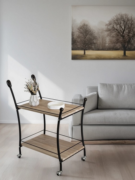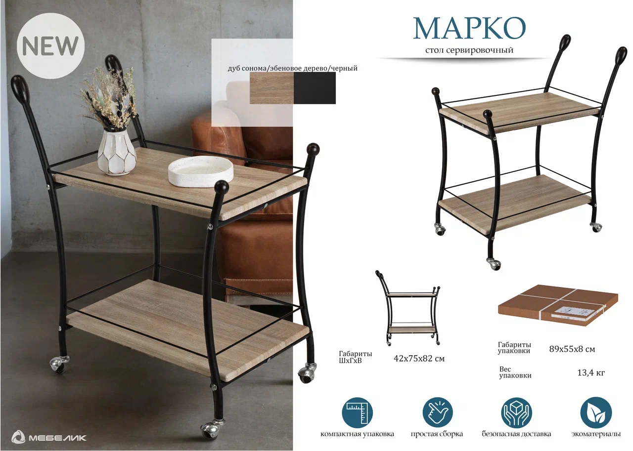 Стол сервировочный Мебелик Марко в цвете дуб сонома и эбеновое дерево с черными ножками представляет собой практичное и стильное решение для интерьера. Его прямоугольная форма и классический стиль позволяют гармонично вписаться в любой интерьер.Столешница выполнена из МДФ с пленочным покрытием, что обеспечивает прочность и долговечность. Металлические ножки гарантируют устойчивость и надежность конструкции, выдерживающей нагрузку до 10 кг. Высота стола составляет 820 мм, что делает его удобным для сервировки. Наличие колесиков облегчает перемещение стола, а полки предоставляют дополнительное пространство для хранения. Этот стол станет отличным помощником в организации пространства, сочетая функциональность и эстетичность.