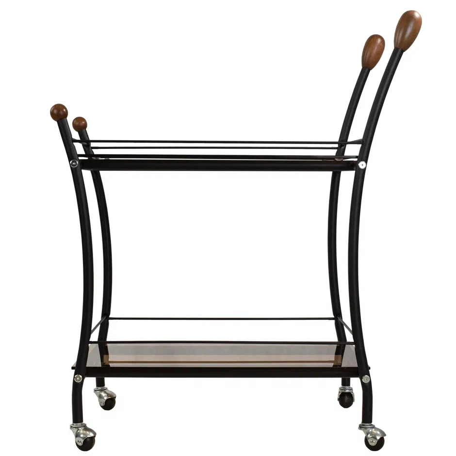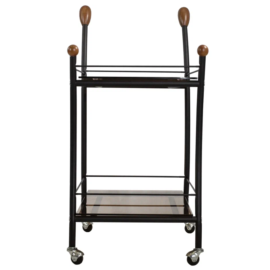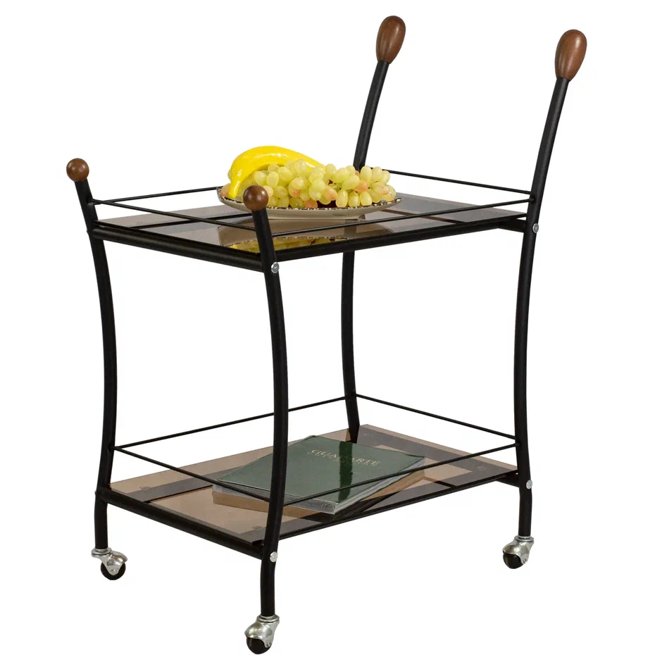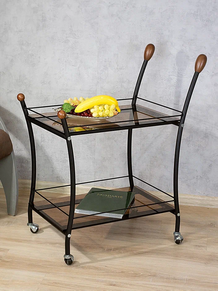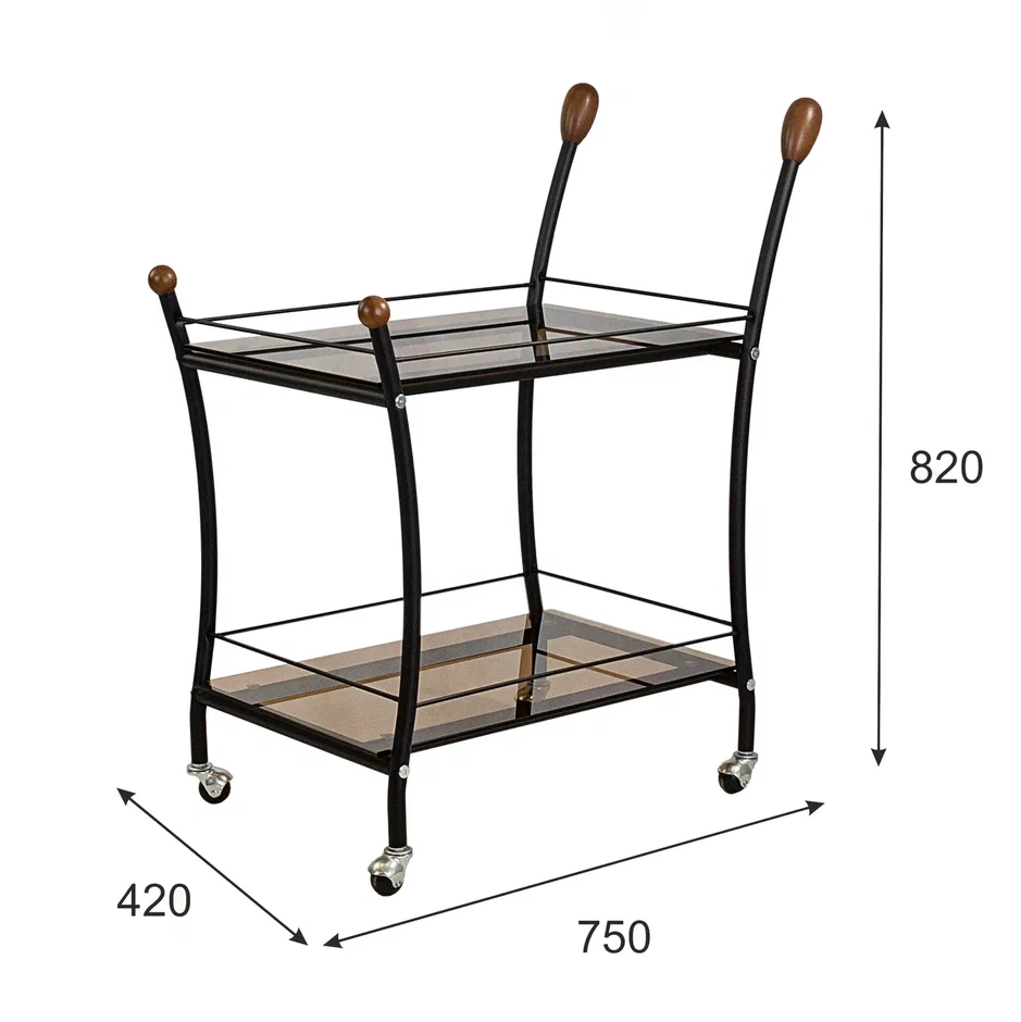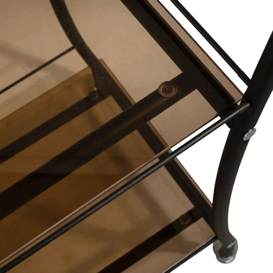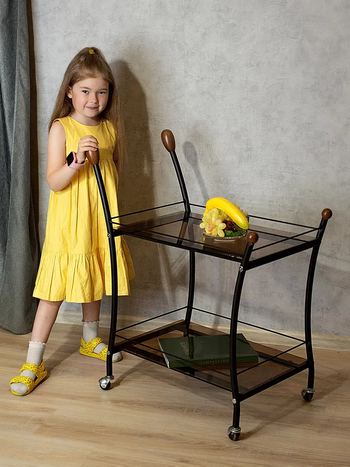 Удобный, оригинальный, вместительный, современный сервировочный столик. Две полочки с ограничителями позволяют перевезти достаточное количество предметов сервировки. Матовые стекла и стойки цвета металлик создают ощущение свежести и чистоты. Две удобные ручки, большие колесики для простой транспортировки столика.Удобно упакован, не вызывает никаких проблем при сборке.