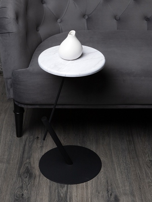 Стол приставной круглый МеталлАрт М015 белый мрамор черный