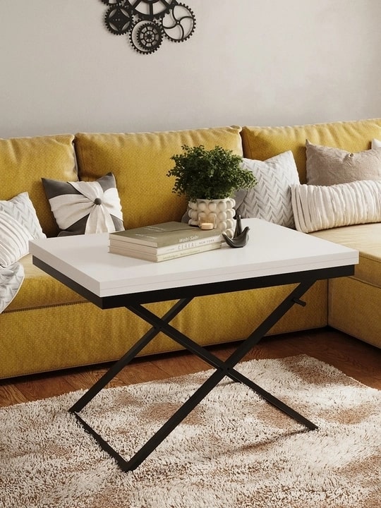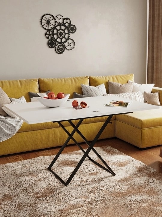 Стол-трансформер Манхэттен — практичная мебель для современного интерьера. Превращается из компактного журнального 900х680 мм в обеденный стол 1360х900 мм. Надежная столешница из ЛДСП на металлическом каркасе дополнена удобным подъемным механизмом. Три положения по высоте позволяют адаптировать стол под разные задачи. Универсальный дизайн подходит для гостиной, спальни или дачи, идеален для семейных ужинов и встреч с друзьями.Варианты цветового решения: Белый / Черный, Графит / Черный, Дуб вотан / Черный, Венге темный / Черный, Гаскон светлый пайн / Крем.