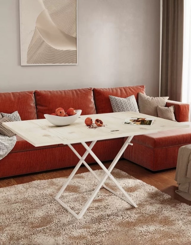 Стол-трансформер Манхэттен — практичная мебель для современного интерьера. Превращается из компактного журнального 900х680 мм в обеденный стол 1360х900 мм. Надежная столешница из ЛДСП на металлическом каркасе дополнена удобным подъемным механизмом. Три положения по высоте позволяют адаптировать стол под разные задачи. Универсальный дизайн подходит для гостиной, спальни или дачи, идеален для семейных ужинов и встреч с друзьями.Варианты цветового решения: Белый / Черный, Графит / Черный, Дуб вотан / Черный, Венге темный / Черный, Гаскон светлый пайн / Крем.