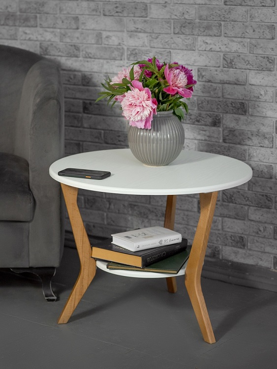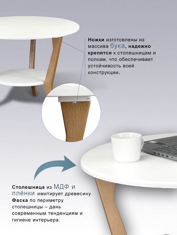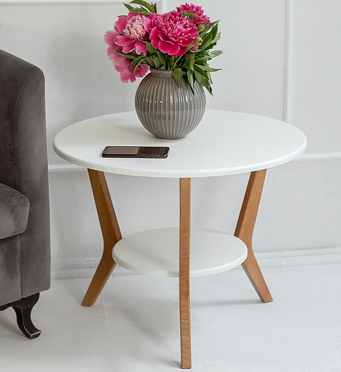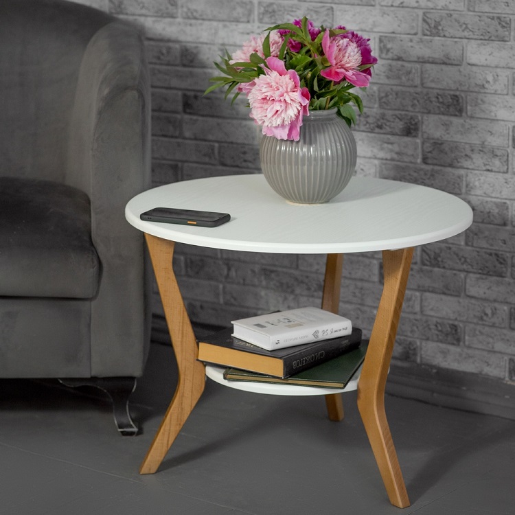 Журнальные столы «BeautyStyle» 13 и 15 — современная интерпретация классического интерьерного аксессуара. Модели отличаются только формой столешницы – в первой модели круг, во второй — мягкий треугольник. В обоих столах ножки изготовлены из натурального массива, надежно крепятся к столешницам и полкам, что обеспечивает устойчивость всей конструкции. Столики отлично подойдут как для оформления общественных рекреационных пространств, путем комбинации форм и цветов отделки, так и для домашних интерьеров в современных скандинавском, техно, минималистическом стилях.