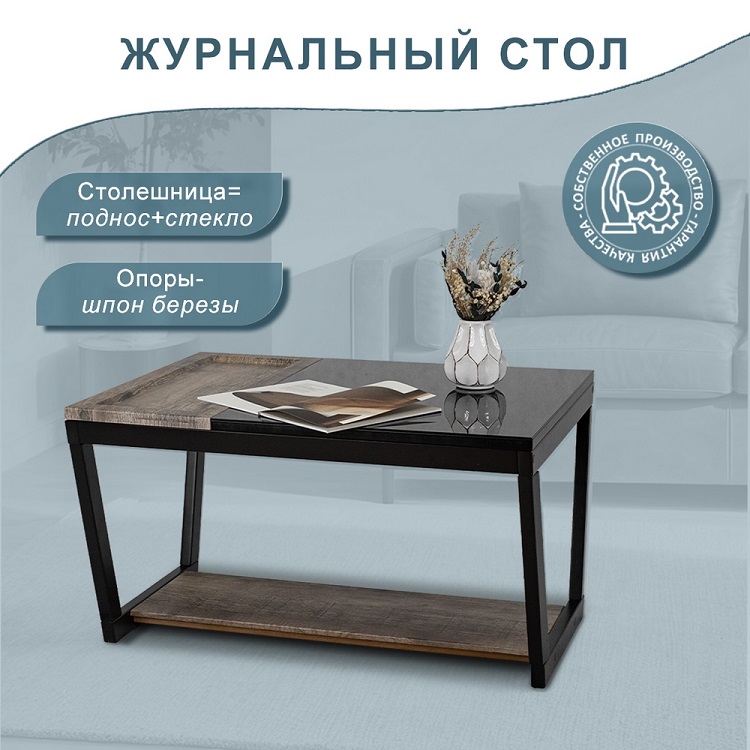 Журнальный стол BeautyStyle 31 — это идеальное сочетание контрастных материалов, создающее уникальный акцент в вашем доме или квартире. Прямоугольная столешница делится на две части: деревянная, выполненная из МДФ, покрытого защитной пленкой, и основная часть из прочного стекла. Деревянная часть столешницы представляет собой несъемный поднос с небольшими бортиками, что предотвращает возможность соскальзывания предметов. Это делает изделие не только стильным, но и практичным в использовании. Опоры из шпона березы обеспечивают устойчивость и надежность конструкции