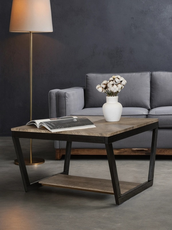 Стол журнальный Мебелик BeautyStyle 32 сочетает в себе стильный дизайн и практичность, что делает его отличным выбором для любого интерьера. Квадратная форма и компактные размеры 700х700х440 мм позволяют удобно разместить его в гостиной или другом помещении.Столешница из МДФ с пленкой выполнена в элегантных оттенках дуба крымского состаренного и серого бетона, что придает изделию современный вид. Ножки из фанеры цвета венге обеспечивают устойчивость и выдерживают нагрузку до 10 кг. Наличие полки позволяет удобно хранить журналы и другие мелочи, сохраняя порядок на столе.