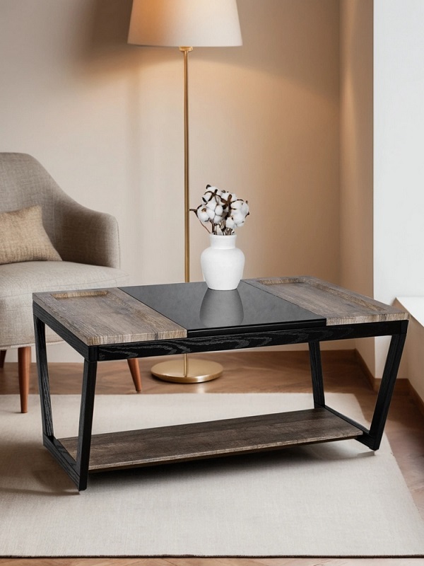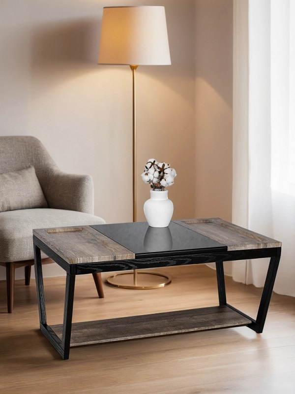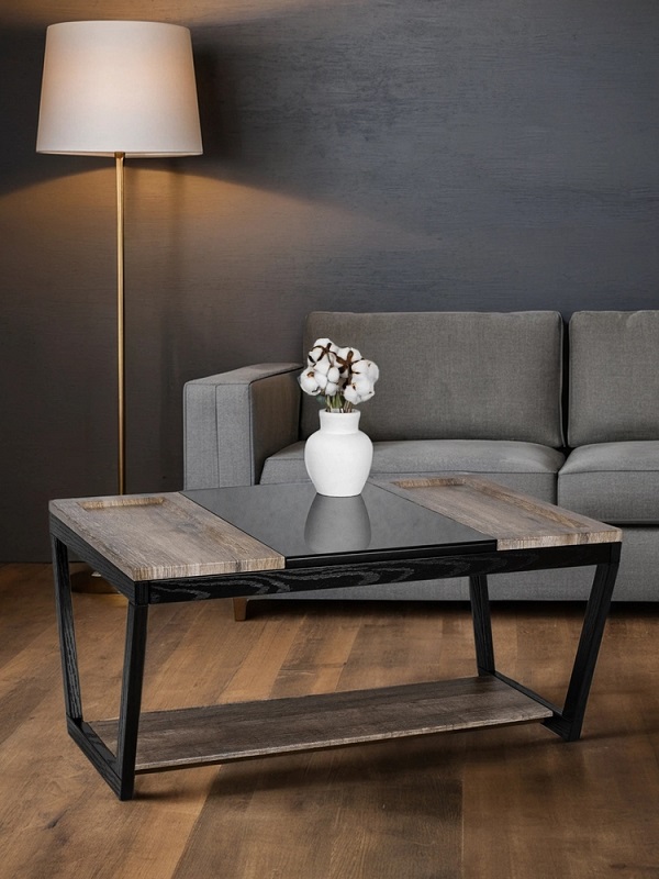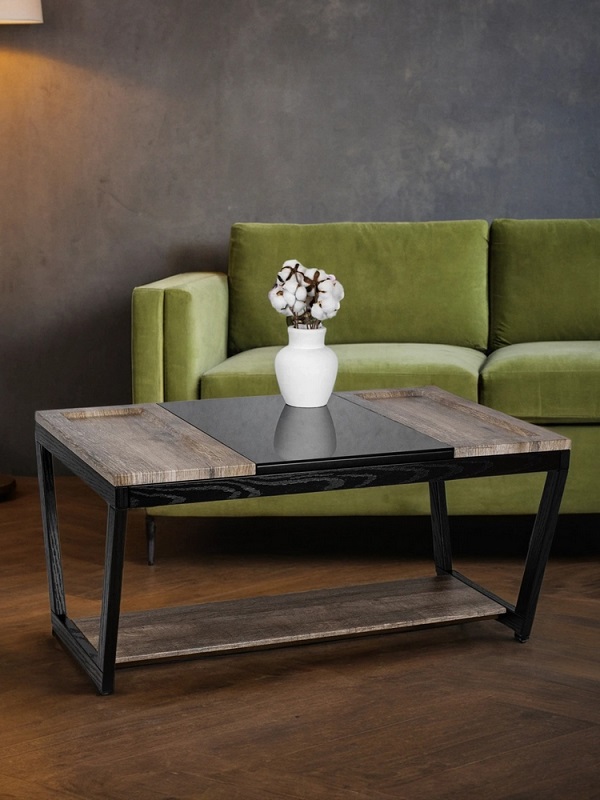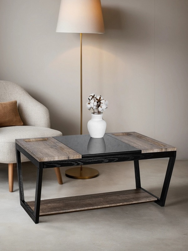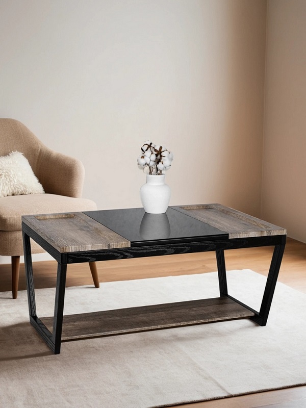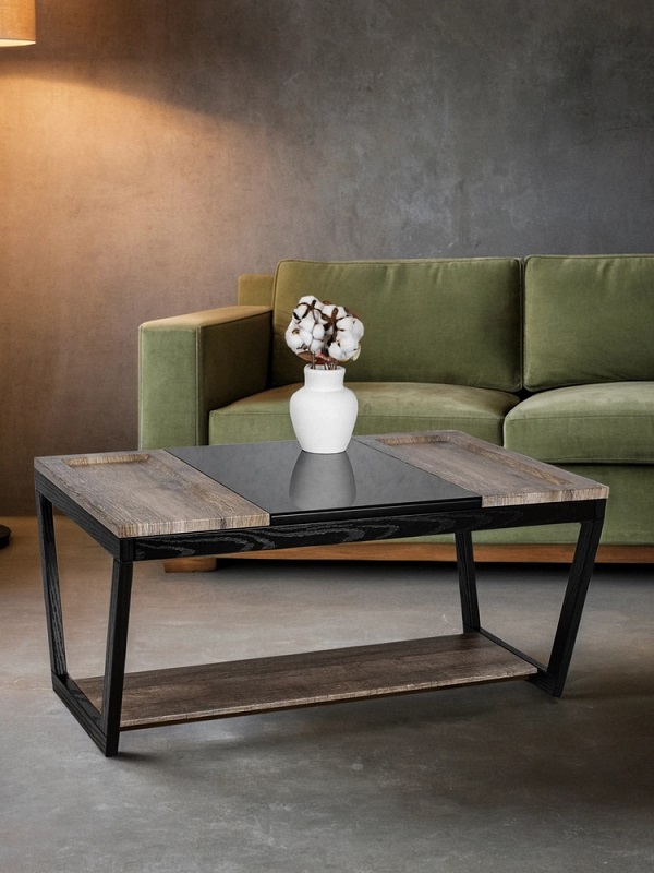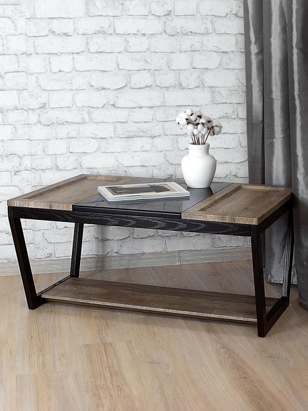 Журнальный стол BeautyStyle 33 — это идеальное сочетание контрастных материалов, создающее уникальный акцент в вашем доме или квартире. Прямоугольная столешница делится на три части: деревянные, выполненные из МДФ, покрытого защитной пленкой, и стеклянная часть. Столик гармонично впишется в любую гостиную, столовую или даже на балкон, придавая вашему дому неповторимый шарм. По бокам стеклянной столешницы расположены два несъемных подноса с небольшими бортиками, что предотвращает возможность соскальзывания предметов.