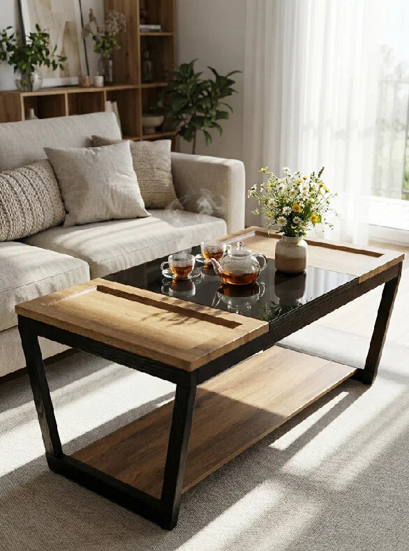 Журнальный стол BeautyStyle 33 — это идеальное сочетание контрастных материалов, создающее уникальный акцент в вашем доме или квартире. Прямоугольная столешница делится на три части: деревянные, выполненные из МДФ, покрытого защитной пленкой, и стеклянная часть. Столик гармонично впишется в любую гостиную, столовую или даже на балкон, придавая вашему дому неповторимый шарм. По бокам стеклянной столешницы расположены два несъемных подноса с небольшими бортиками, что предотвращает возможность соскальзывания предметов.