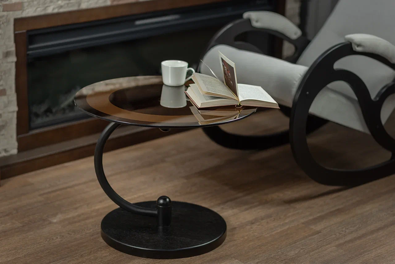 - Мощным основанием диаметром из лмдф и опорой в виде полукруга идеально подойдет для оформления зон отдыха офисных и общественных помещений, современных частных интерьеров, можно подобрать столик под цвет мебели