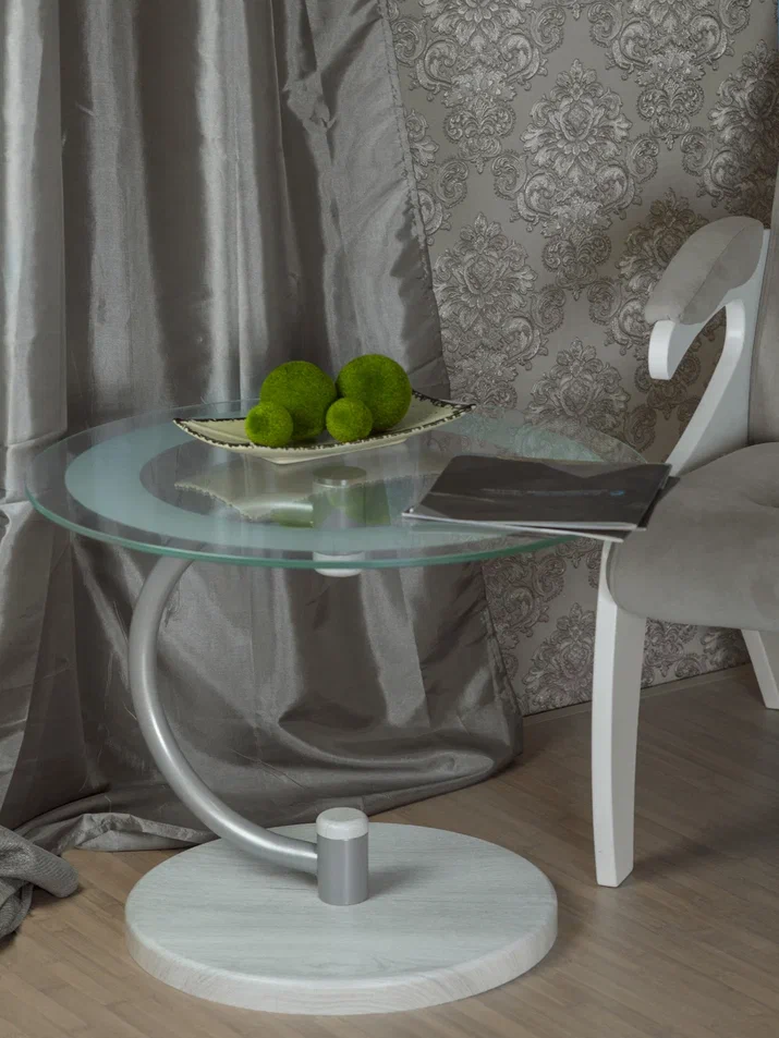 - Мощным основанием диаметром из лмдф и опорой в виде полукруга идеально подойдет для оформления зон отдыха офисных и общественных помещений, современных частных интерьеров, можно подобрать столик под цвет мебели
