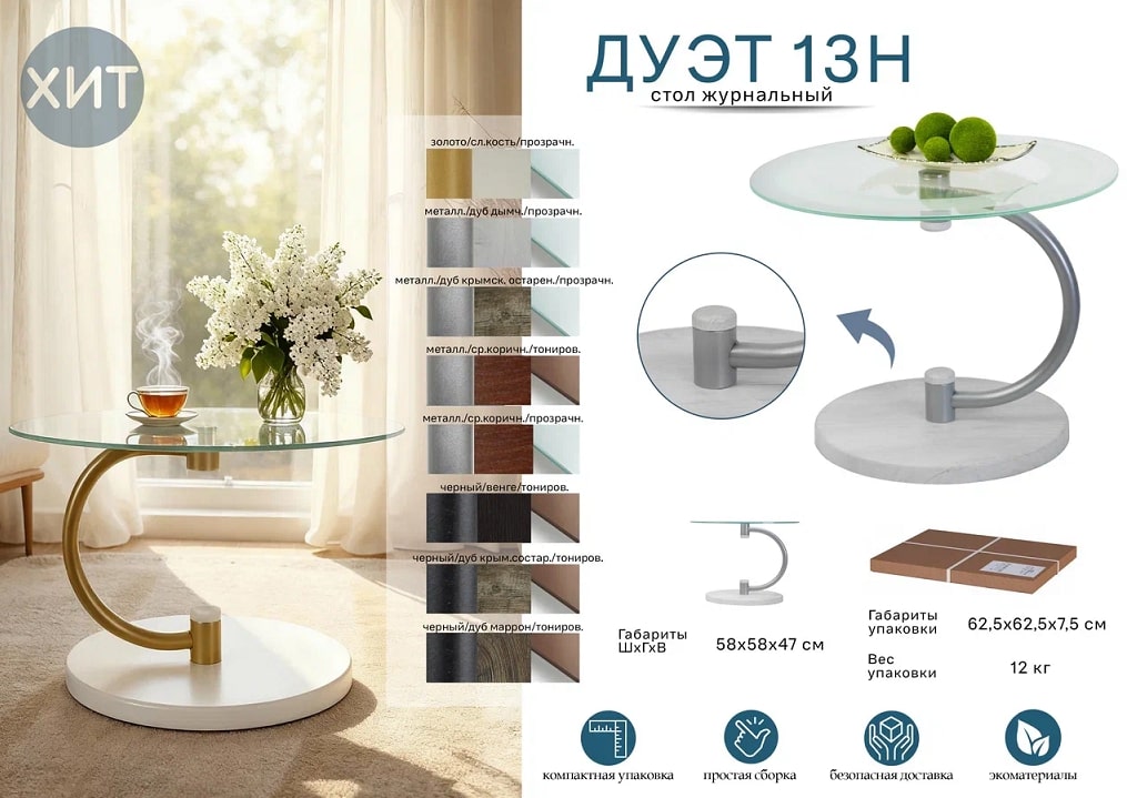 Стол журнальный Дуэт 13Н золото слоновая кость