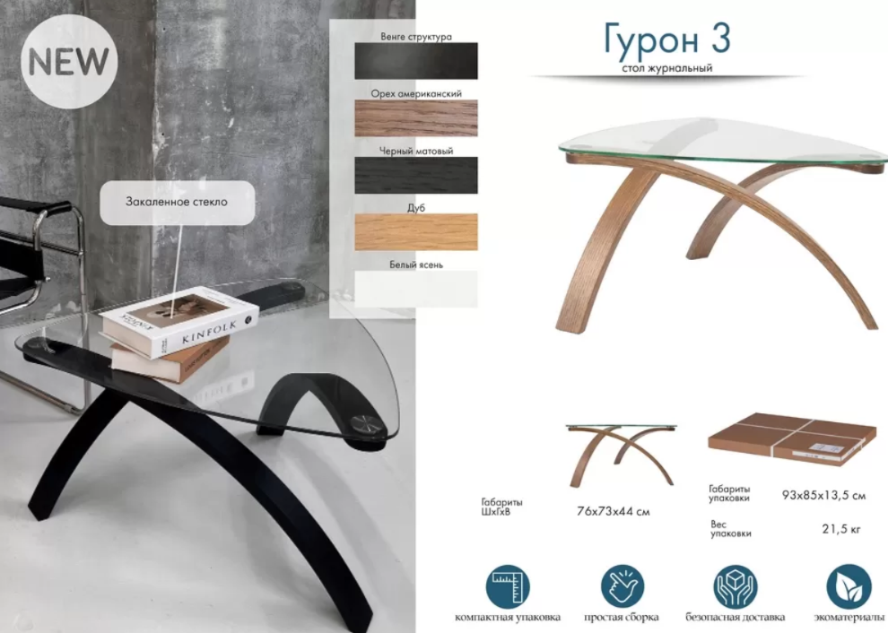- Материалы: Гнутокленный шпон березы, Стекло закаленное