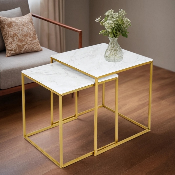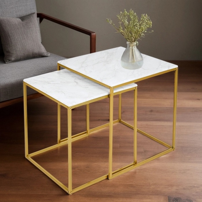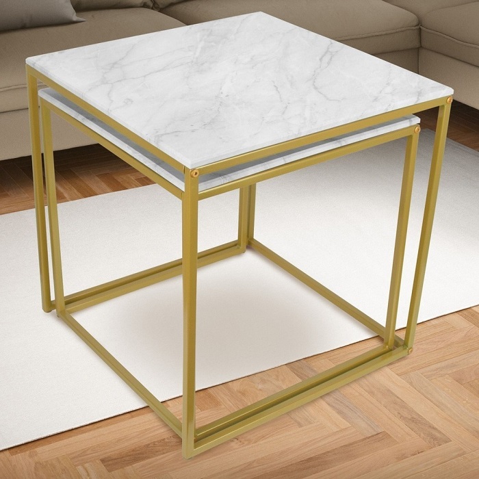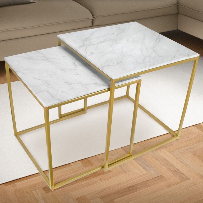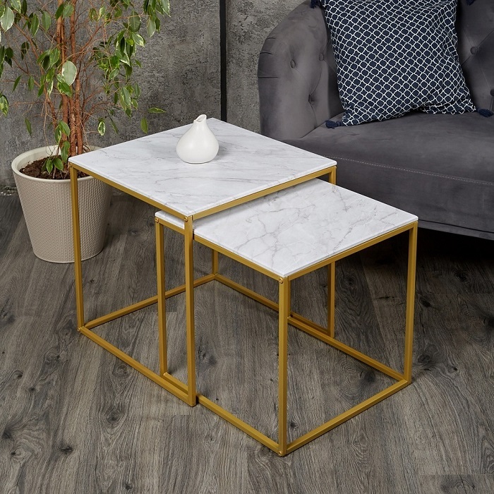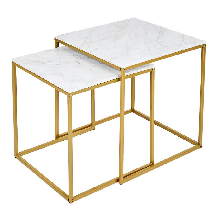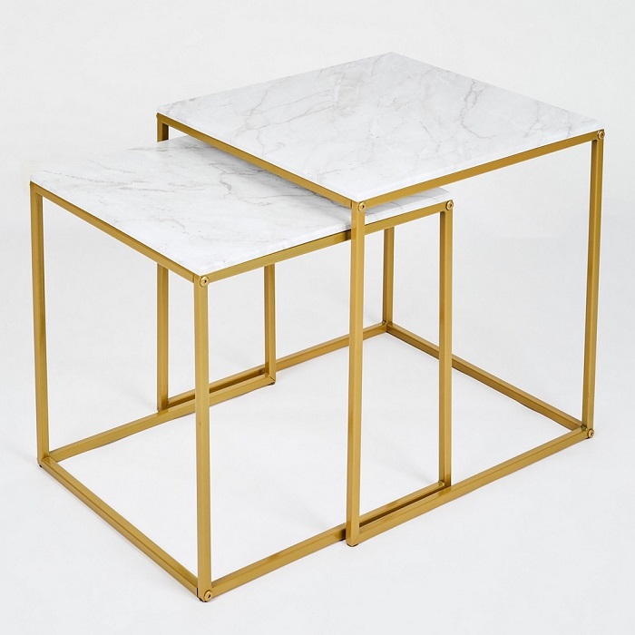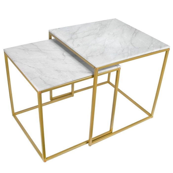 Стол журнальный МеталлАрт М002 белый мрамор золото