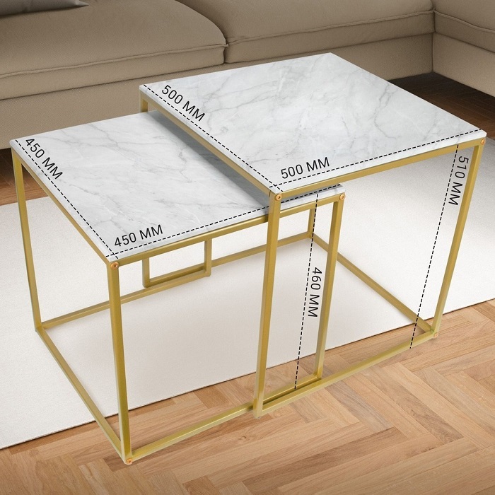 Журнальные столики МеталлАрт М002 — это комплект из двух прямоугольных моделей, которые идеально впишутся в ваш интерьер. Маленький столик легко убрать под большой, что обеспечивает компактное хранение и удобство использования. Столешницы из МДФ обтянуты пленкой ПВХ, что делает их устойчивыми к высоким температурам и защищает от возможных повреждений. Металлический каркас, устойчивый к царапинам и ударам, гарантирует долговечность и надежность. Кромка столешницы идет вровень с каркасом, что придаёт столикам современный и аккуратный вид