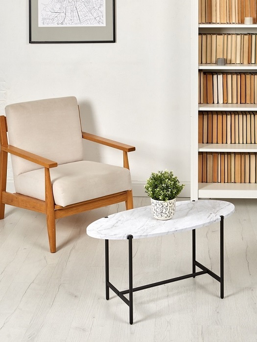 Стол журнальный МеталлАрт М025 белый мрамор