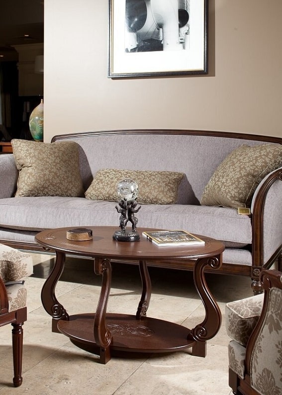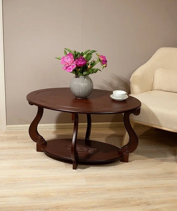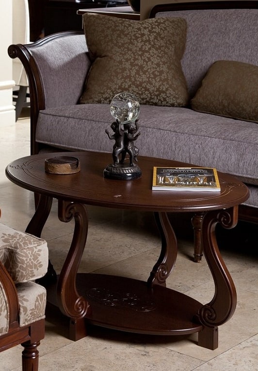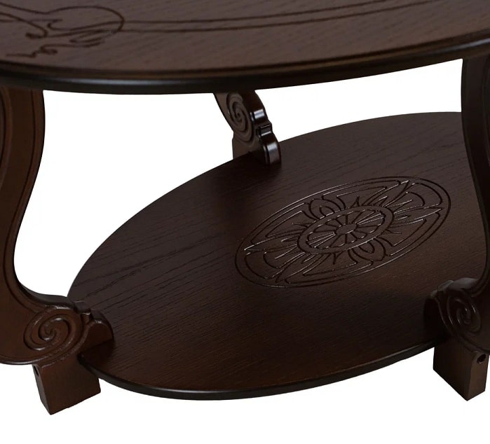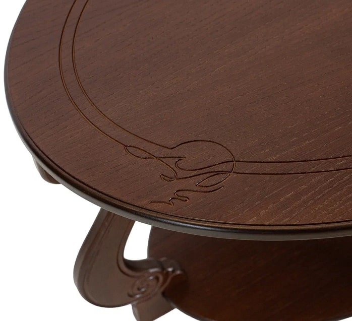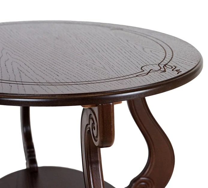 Классический столик в гостиную или спальню, изящная гравировка на столешницеОригинальные ножки классической формы с резьбой, покрытой патиной