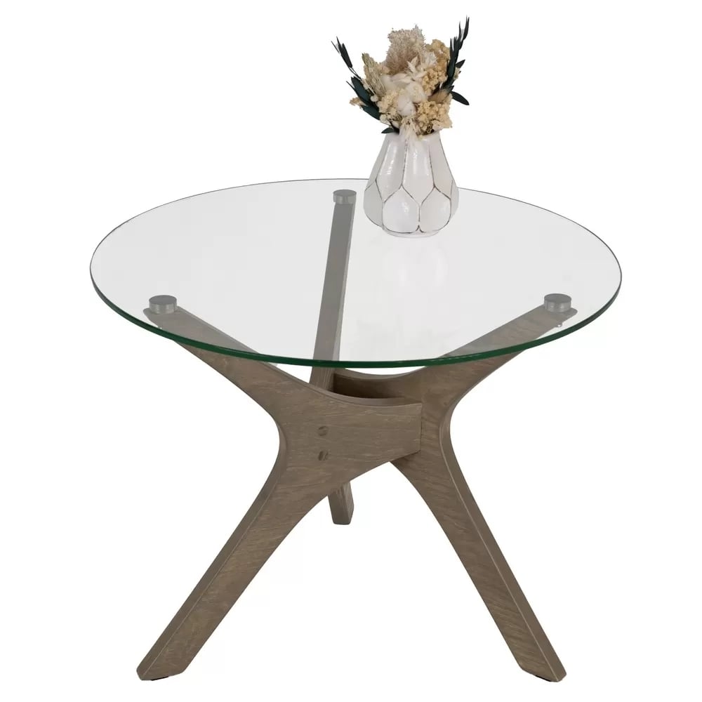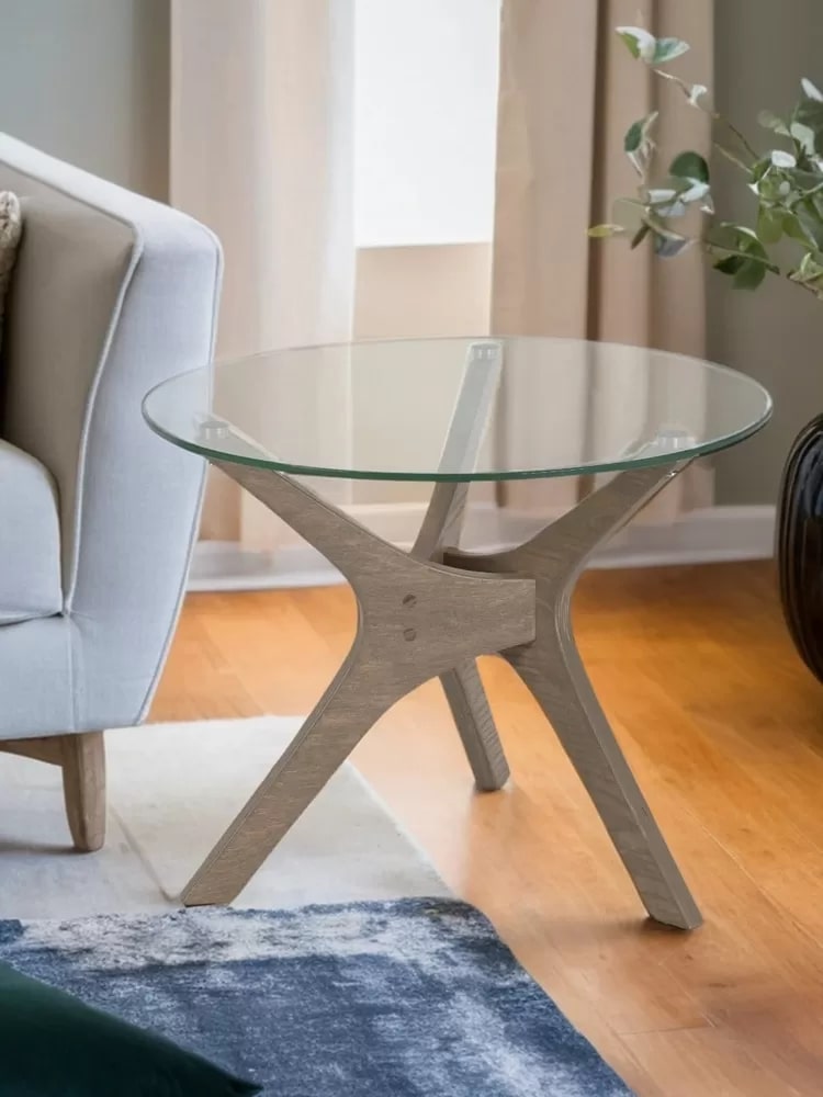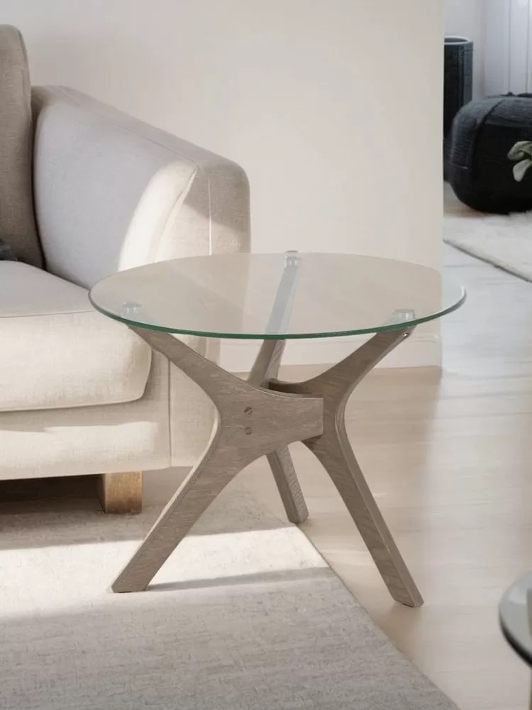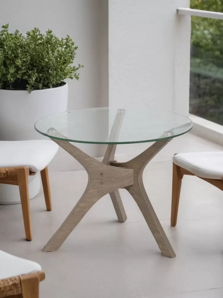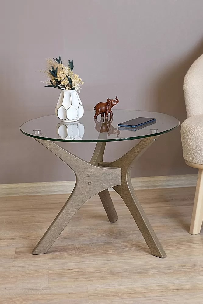 Рилле 446 – это стильный и компактный предмет мебели, который добавляет уют в дом. Его элегантная круглая столешница из прочного стекла придает любому пространству легкость и воздушность. Главная особенность модели — уникальные опоры из шпона березы в форме бумерангов, создающие динамичную композицию.Столик можно использовать как журнальный, прикроватный или приставной, он отлично впишется в любую комнату: гостиную, спальню или офис. Украсьте его свежими цветами или свечами для создания особого шарма.